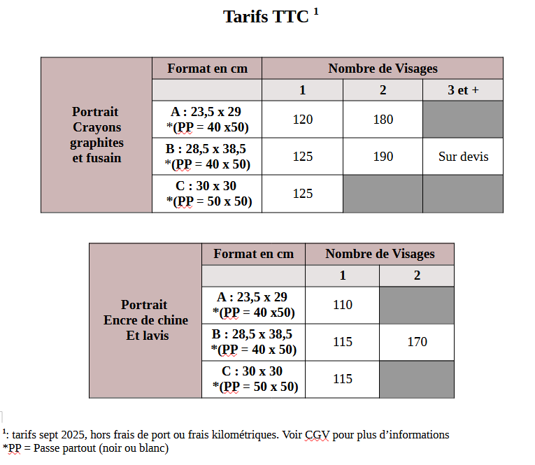 Les dessins sont remis, signés et datés, avec une finition par passe-partout (PP)** noir ou blanc, pour faciliter l’encadrement de votre choix.